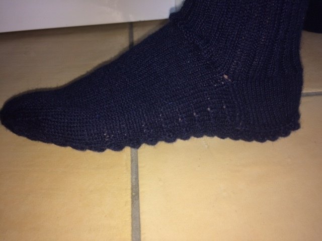 Meine ersten Socken mit dieser Sohle haben übrigens deutlich länger ohne Reparaturen ausgehalten als handgestrickte Socken mit normaler Sohle.