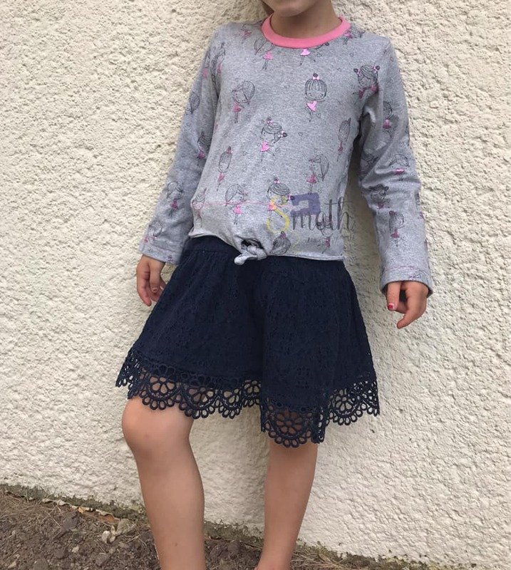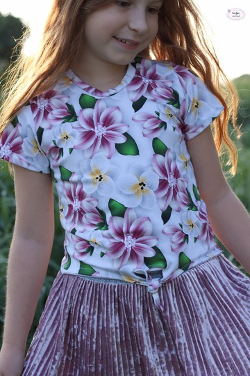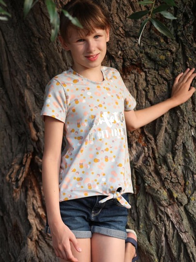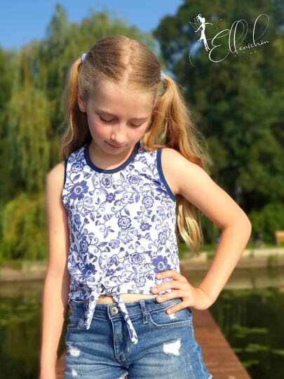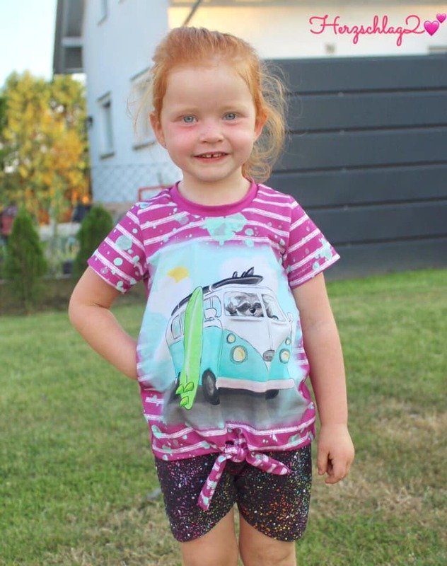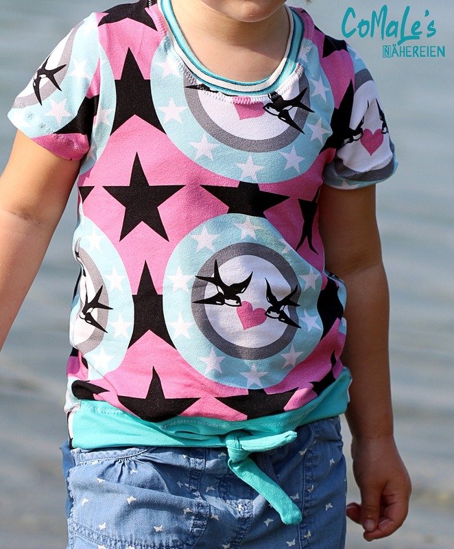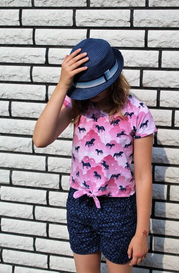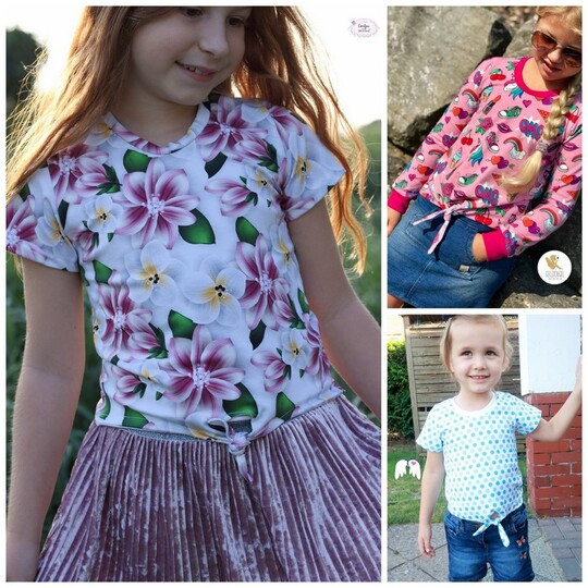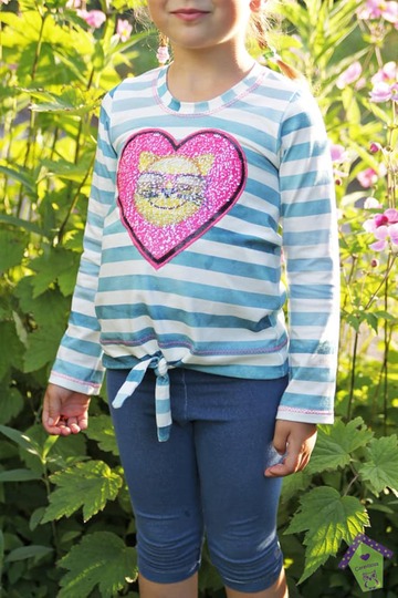 Einfach zu nähen und doch ein echter Hingucker – nicht nur im Sommer: das Knotenshirt Cassandra. Nähbar von Gr. 98-164 jeweils in Einzelgrößen kannst du es mit langen oder kurzen Ärmeln versehen. 2 verschiedene Längen (Short und „normal lang“) laden zum Variieren ein – und auch ein paar Möglichkeiten für Unterteilungen findest du in dieser Anleitung.