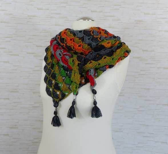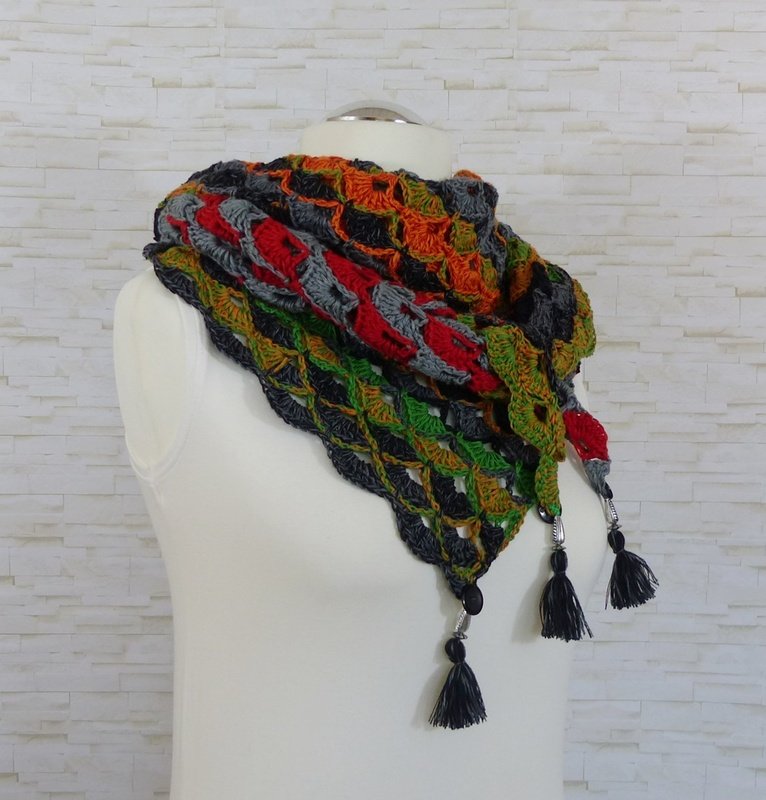 Die abgebildete Dreieckstücher haben eine Länge von ca. 165-170 cm / Höhe ca. 66-68 cm. Die Größe kann jedoch selbst bestimmt werden.