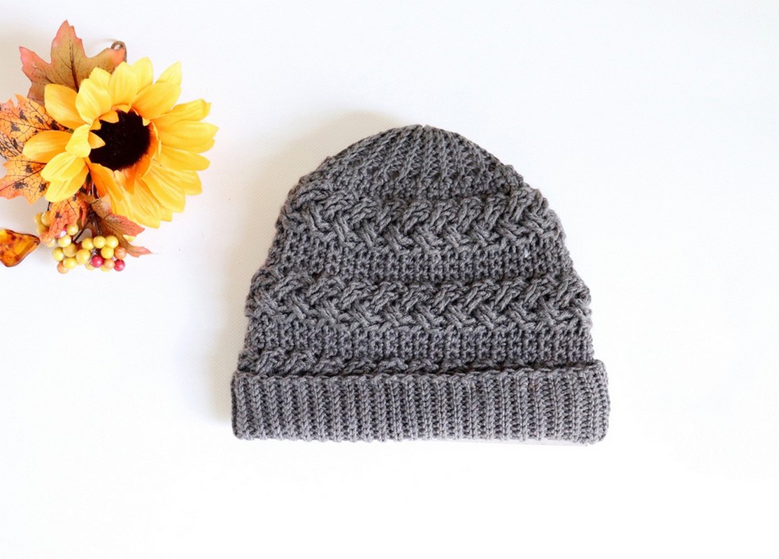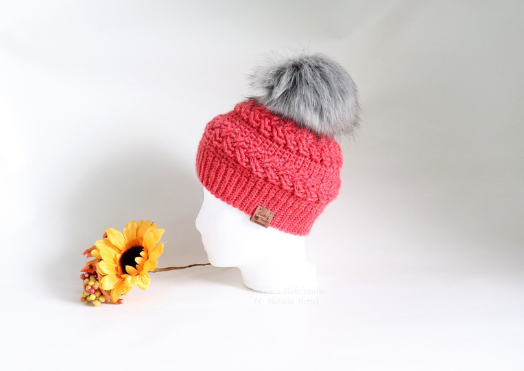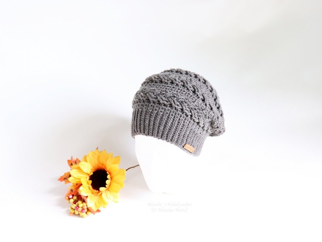 Die Mütze ist eher für Fortgeschrittene gedacht, die Erfahrung mit dem Häkeln des Zopfmusters haben.