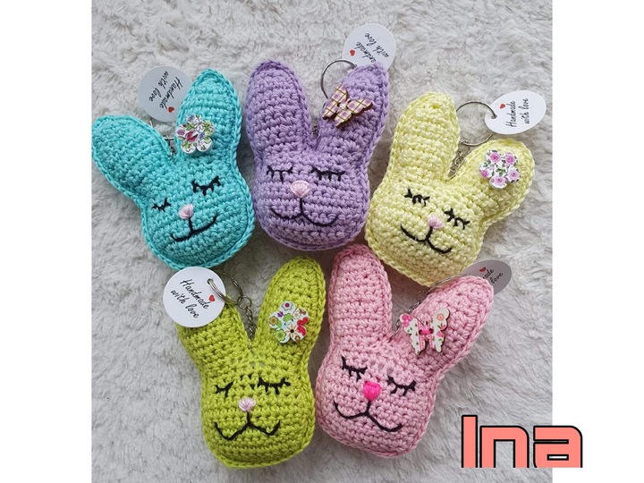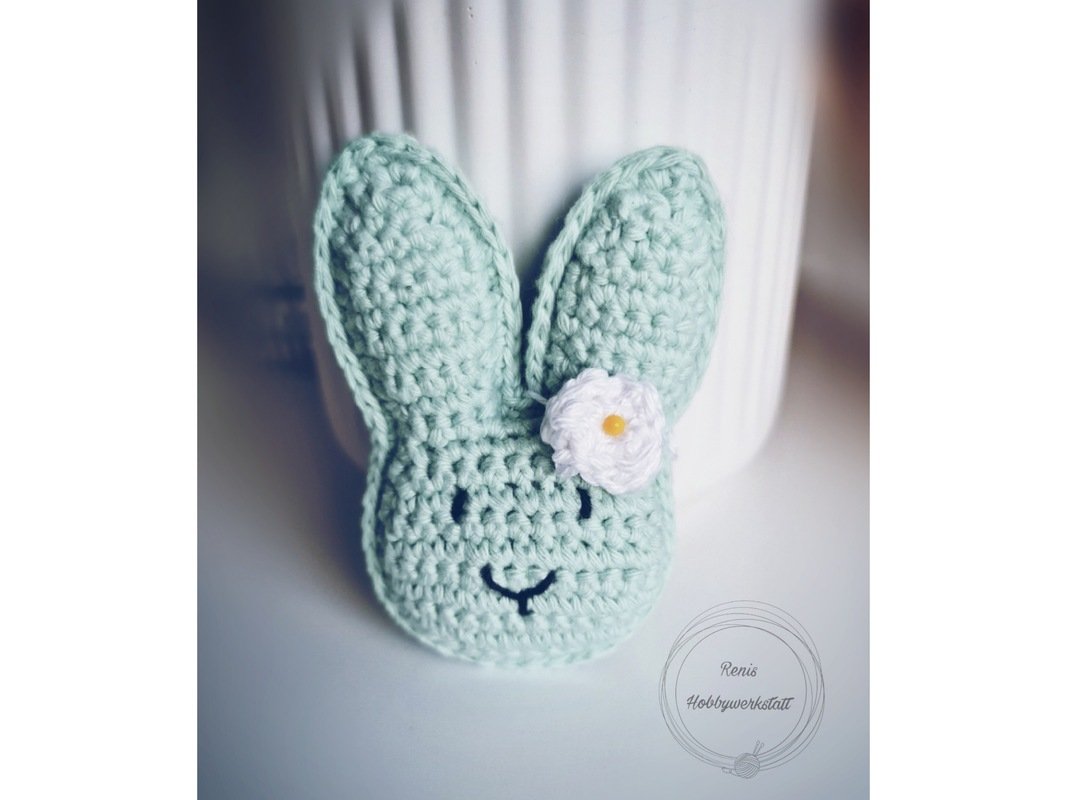 Mit dieser Anleitung kannst du dir einen Schlüsselanhänger, Taschenbaumler oder einfach eine Applikation in Hasen(kopf)form nachhäkeln.