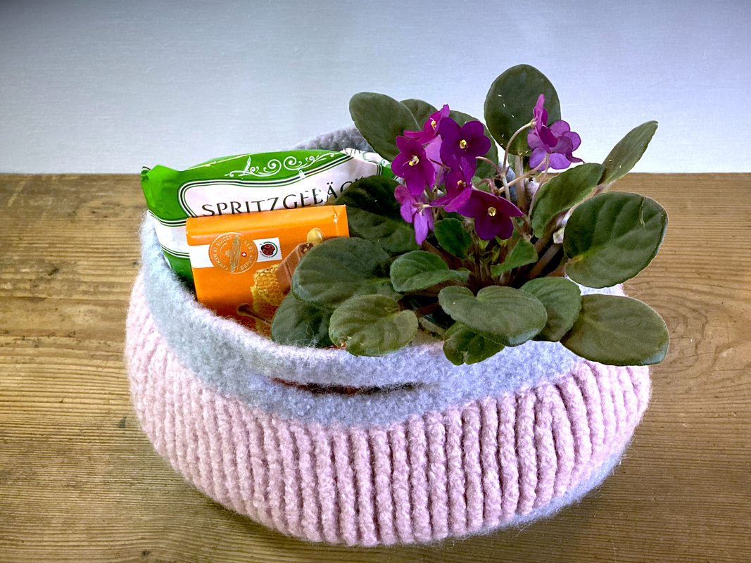 Danach wird es einfach in der Waschmaschine gefilzt, dadurch wird es schön stabil.