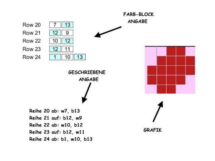 -farbige Zahlen-Blöcke für jede Zeile für C2C-Technik