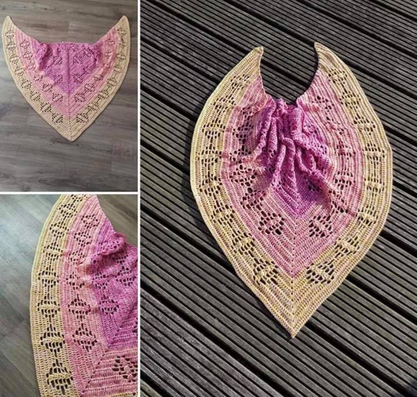 Die größe des Tuches variert je nach Garn und Nadelstärke. Mein Tuch wurde bei 1000/4 und NS 4 ca 194cmm*77cm groß geworden.