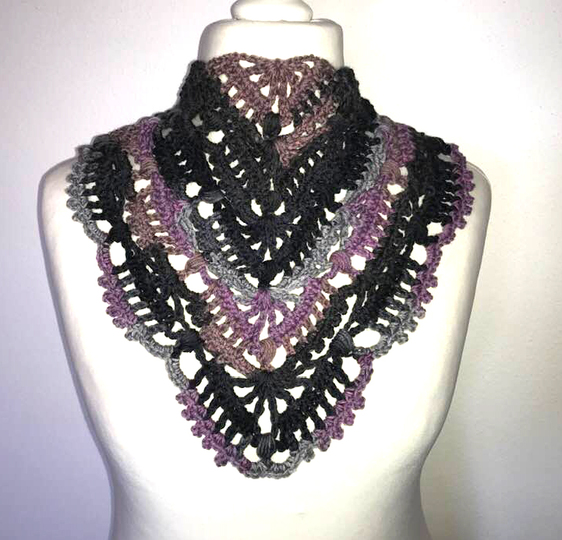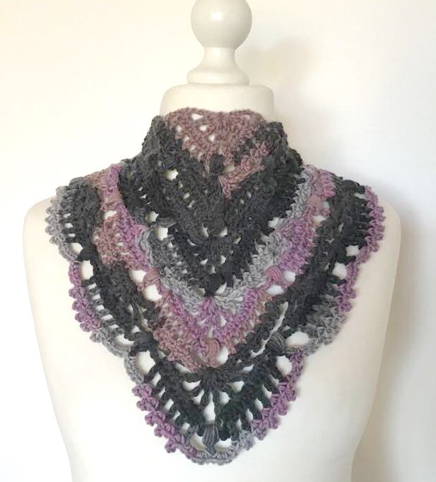 Dreieckstuchmuster "Christine" besteht aus: Luftmaschen, festen Maschen, halben Stäbchen, doppelten Stäbchen und Büschelmaschen.