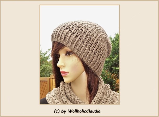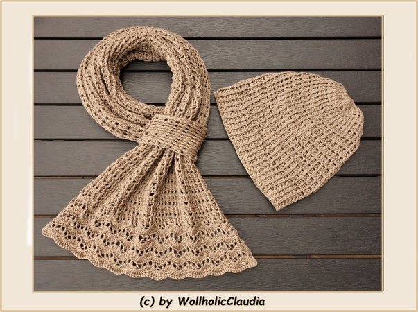 Dieses Set besteht aus einem Schal und der passenden Mütze. Beides natürlich individuell in der Länge bzw. der Größe anpassbar. Alles wird in der Anleitung genau erklärt.