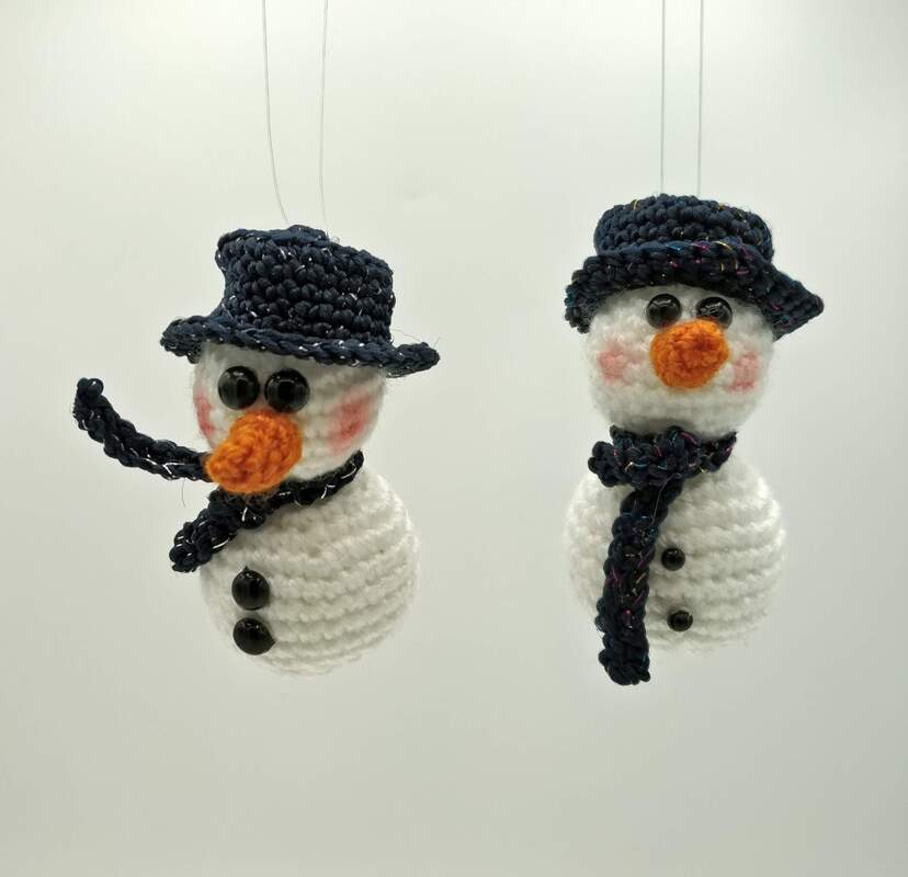 Hier ist ein kleiner süsser Hängeschneemann. Der knuffige Schneemann ist ein Hingucker.