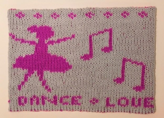 Dieser außergewöhnliche Loop mit eingestricktem Motto und einer tanzenden Ballerina wird kleine und große Tänzerinnen begeistern! Er ist Statement und wärmendes Accessoire in einem.