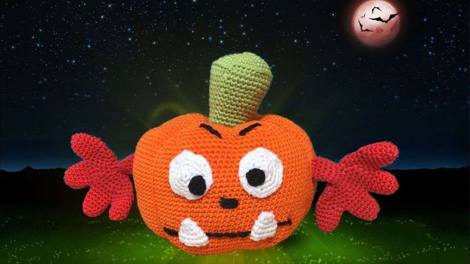 Bei Verwendung des oben genannten Materials und Nadel hat der Kürbis eine ungefähre größe von 25 cm