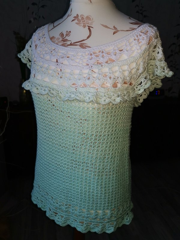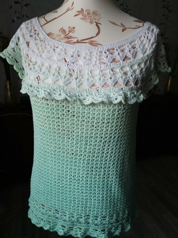 Ein leichtes Sommertop mit hübschen Carmenkragen, ideal zur Jeans, kurzen Hose oder Rock.