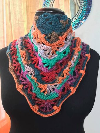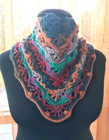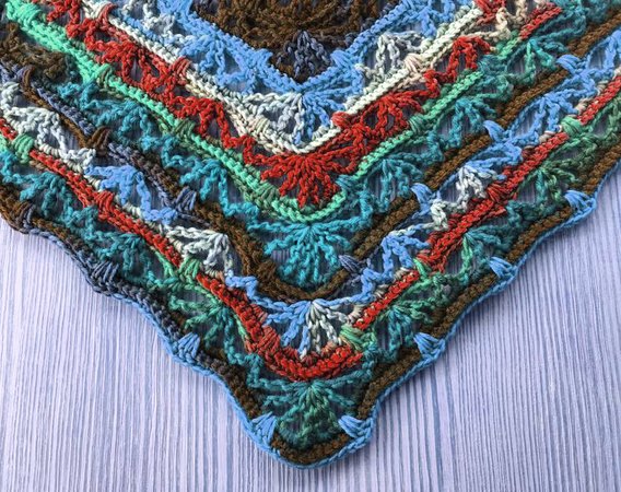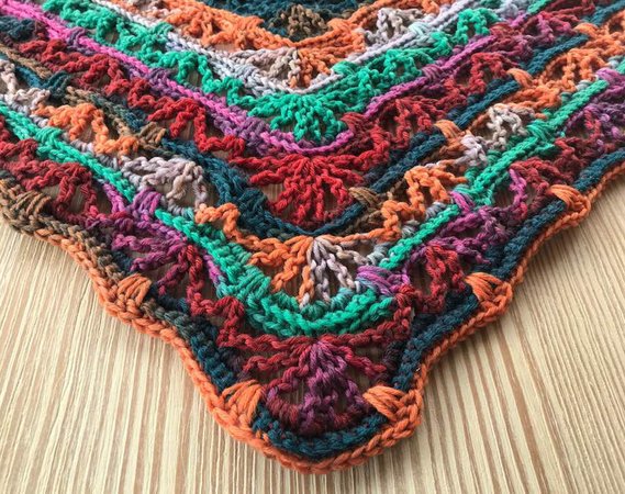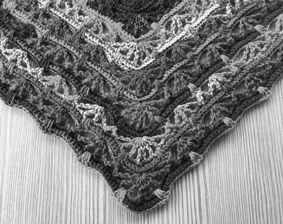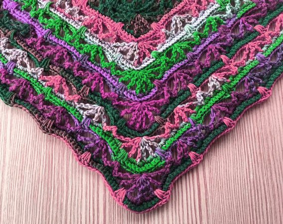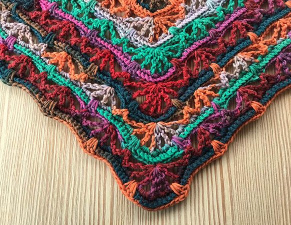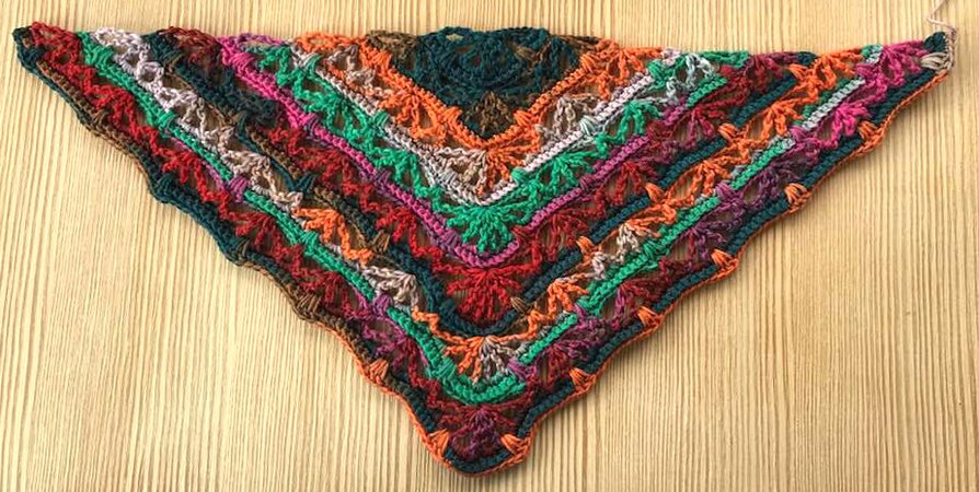 Dreieckstuchmuster "Freude" besteht aus: Luftmaschen, festen Maschen, Stäbchen, doppelten Stäbchen.....