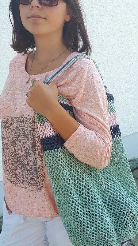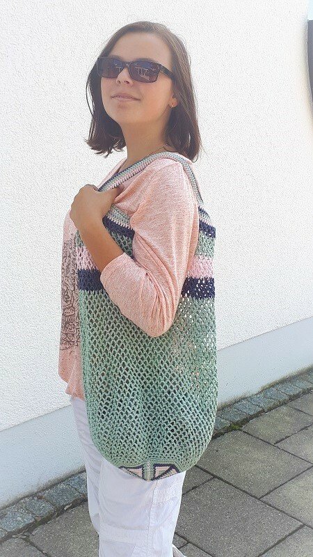 Hinweis: Beim vorgestellten Produkt handelt es sich NICHT um ein fertiges Produnkt, sondern um eine Schritt-für-Schritt-Häkel-Anleitung, die Dir hilft, diese Einkaufstaschen zu fertigen.