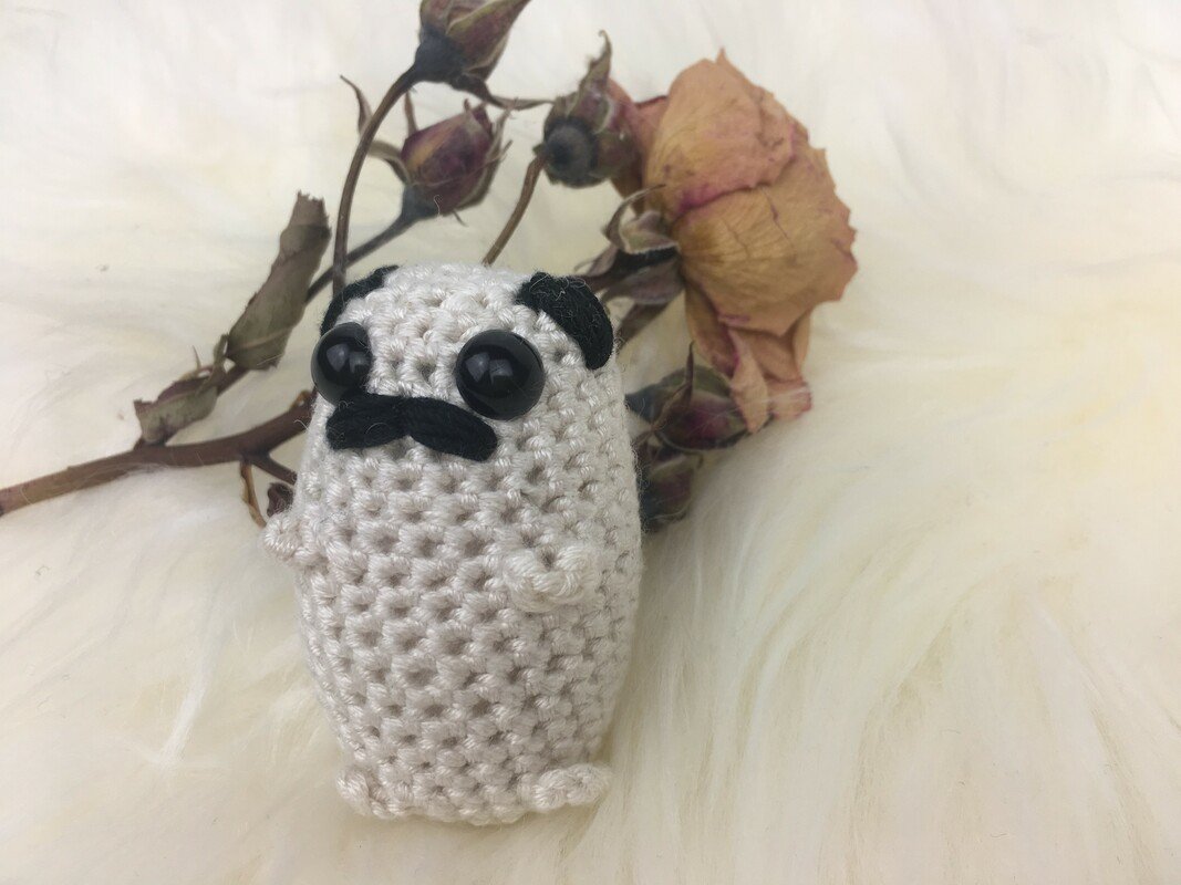 Schritt für Schritt Häkelanleitung mit Erklärungen und Bildern. Der gehäkelte Mops kann als Schlüsselanhänger oder als Amigurumi verwendet werden. Alles was du brauchst findest du in der Anleitung.