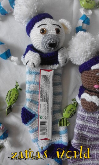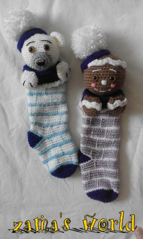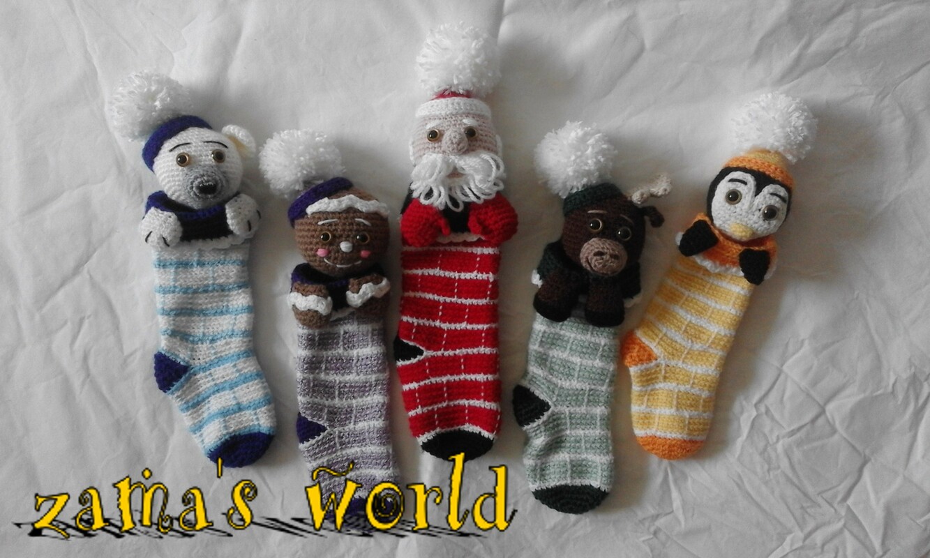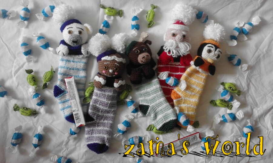 Die Söckchen haben eine angenehme Handgröße und genug Platz für Schokoriegel, Bonbons oder Kekse (siehe die letzten beiden Bilder). Die Gesamtlänge eines Söckchens beläuft sich von der Zehenspitze bis zum Mützenpommel gemessen auf circa 27 cm. Je nach Garndicke und Maschendichte kann die Größe variieren.