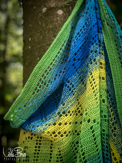 Das gehäkelte Dreiecktuch «Graphical leaves XXXL» ist in der Filethäkel-Technik gearbeitet. Es lässt sich sehr variabel tragen, und ist ein absolutes Wohlfühltuch in das man sich richtig genial einkuscheln kann.