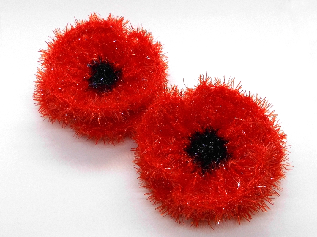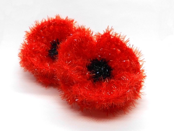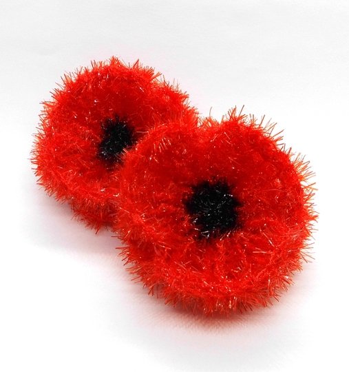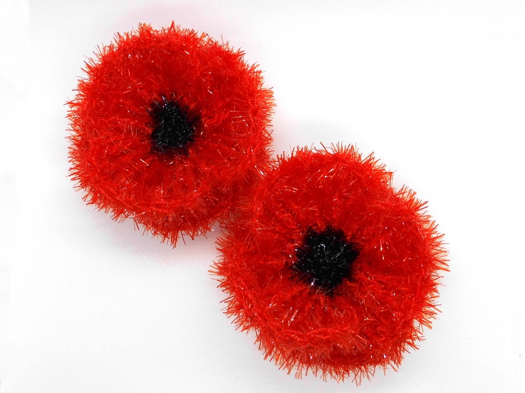 Die Mohnblumen werden aus Luftmaschen, festen Maschen, Mehrfach-Stäbchen gehäkelt.