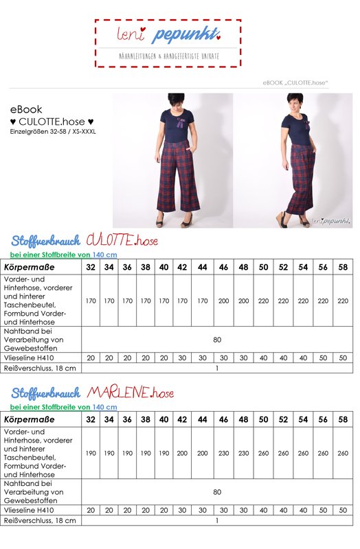 Wie bei allen “leni pepunkt.” Damen Schnitten sind auch hier alle (Einzel-)Größen 32-58 beinhaltet!