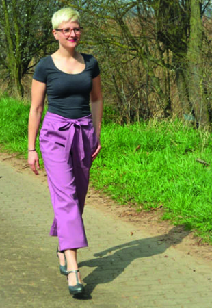 Außerdem kannst du auch eine Schleife aus einem leichten Stoff in die Seitennähte mit einarbeiten, so dass du den Look deiner CULOTTE.hose ganz individuell bestimmen kannst.