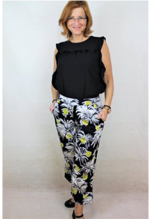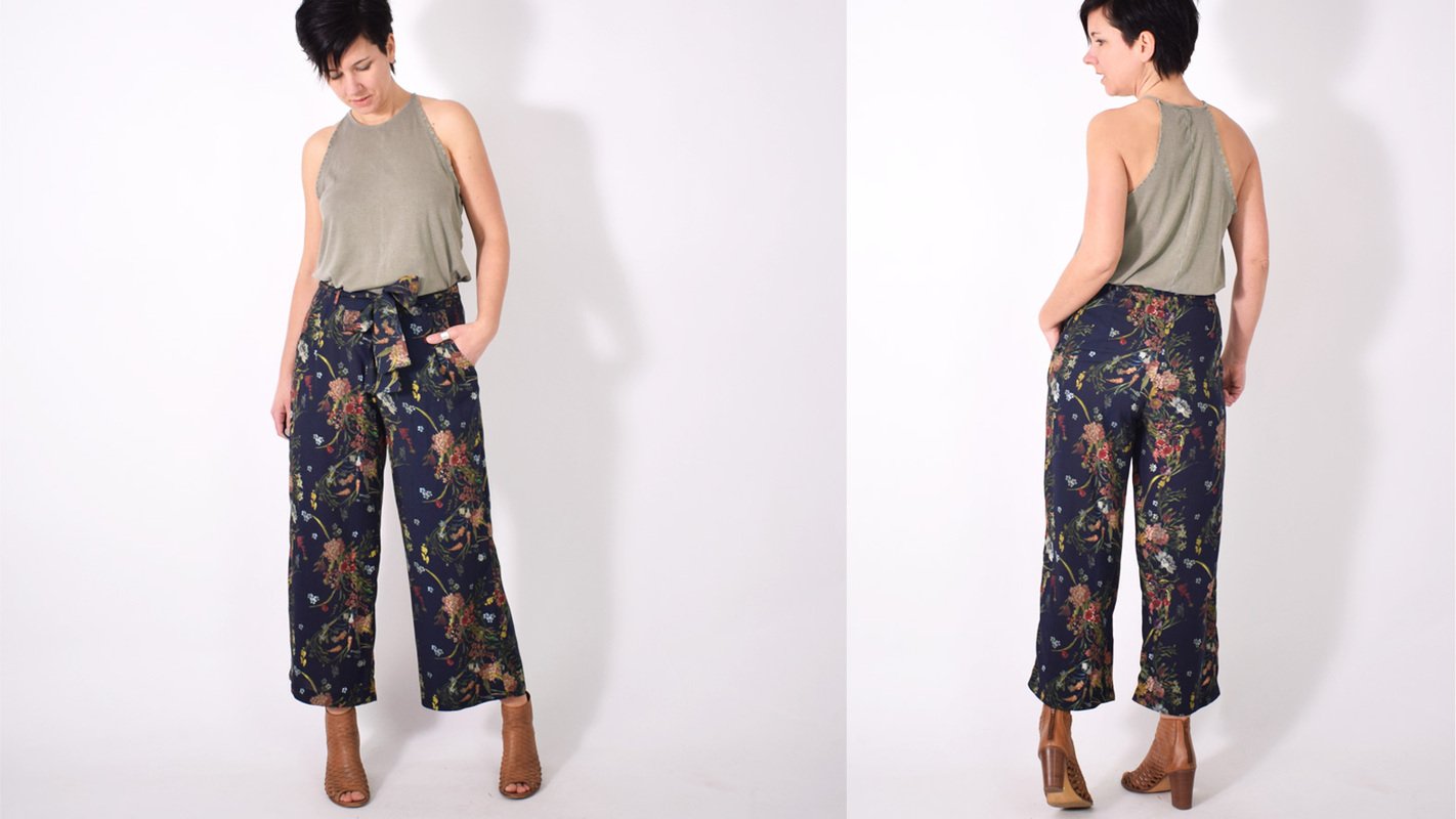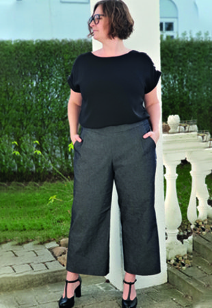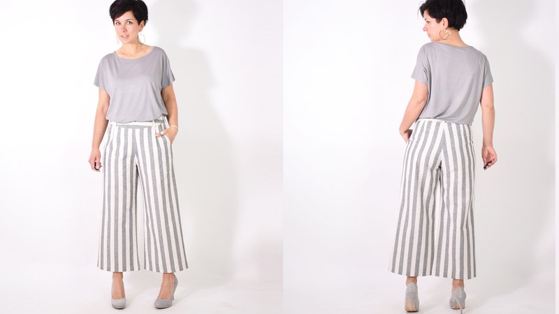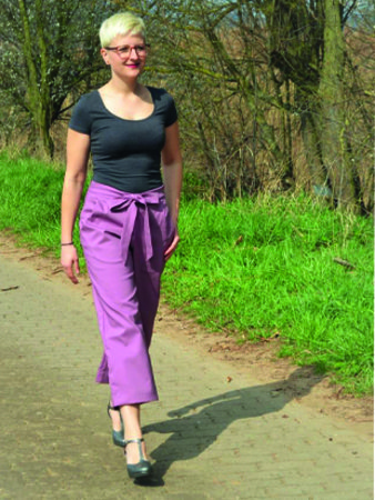 Die klassische Hosenlänge einer Culotte darf maximal bis zum Knöchel gehen – unsere endet noch ein wenig darüber. Zusätzlich haben wir der Hose noch eine extralange Länge verpasst, dass aus diesem Schnittmuster auch ganz einfach eine „Marlene-Hose“ genäht werden kann.