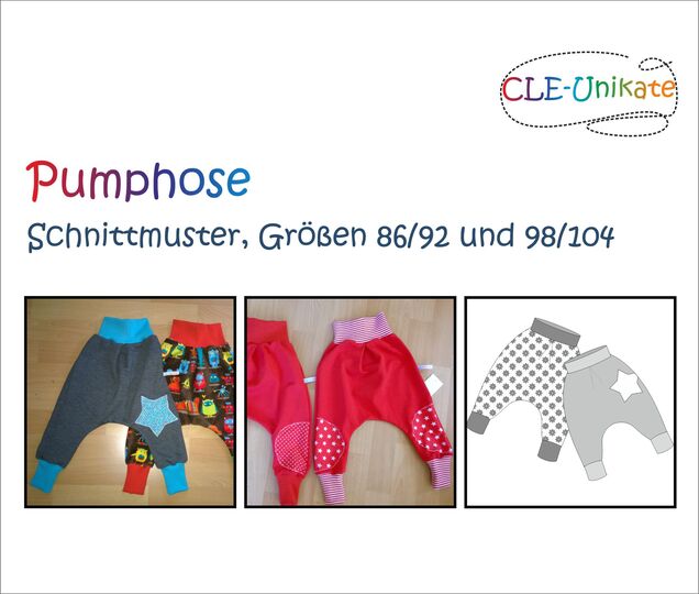 Das Ziel dieser Anleitung ist eine Kinder-Pumphose aus einfarbigem oder gemustertem Jersey, mit oder ohne Applikation - ganz nach Lust und Laune. Durch den weichen dehnbaren Stoff, dem hohen Bauchbund und den langen Beinbündchen ist sie total bequem.