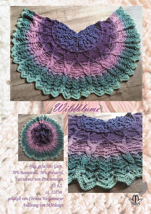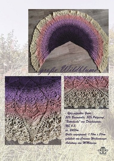 Groß-Produktionen von Tüchern sind ohne meine Zustimmung nicht erlaubt. Natürlich darf man seine selbst gehäkelte Wildblume verkaufen (mit Angabe von MMdesign), aber am Schönsten ist es - selbst tragen, oder jemanden liebevoll beschenken...