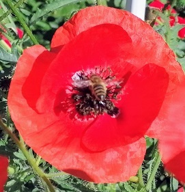 Jedes Jahr verstreue ich gerne (auch mal heimlich irgendwo) Wildblumensamen und finde es sehr spannend, was dabei herauskommt. Blumen sind einfach was Wunderbares. Letztens beobachtete ich eine Hummel, absolut “Blütenstaub-verstaubt”, die offensichtlich satt und zufrieden in einer tief roten Klatschmohnblüte eingeschlafen ist. Als sie aufwachte, wühlte sie genüsslich weiter in der Blüte herum. Sie flog dann zu einer blauen Blume, deren Namen ich nicht weiß, erkundete und fand auch hier den Nektar. Sie flog wieder weiter auf eine pink-lila Blume, deren Namen ich nicht weiß, und sortierte erstmal die kleinen, dann die großen Blütenblätter, als wollte sie mir zeigen wie schön das Schattenspiel ist, wenn sich diese überkreuzen. Sie flog wiederum weiter auf eine gelbe Blume, deren Namen ich nicht weiß, und jonglierte mit den Pollen. Dann ruhte sich das fleißige, pelzige “Blütenstaub-verstaubte” Tierchen, wieder aus.