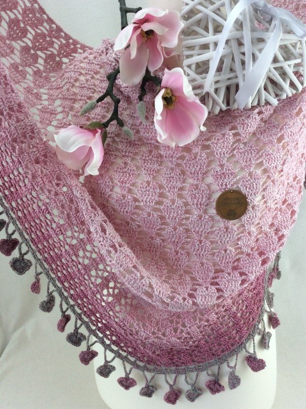Das Dreieckstuch "Magnolienherz" ist ein leichtes luftiges Tuch.