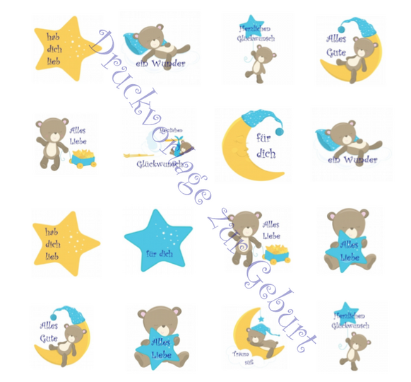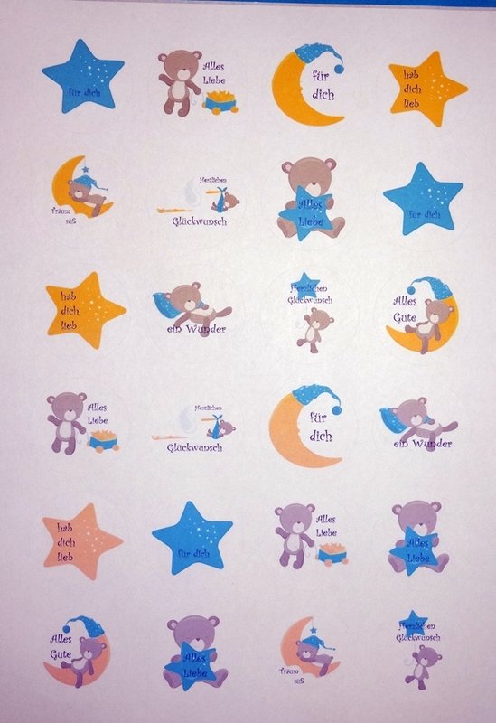 24 Motive für A4 Stickerbogen mit 24 Kreisen - 4cm