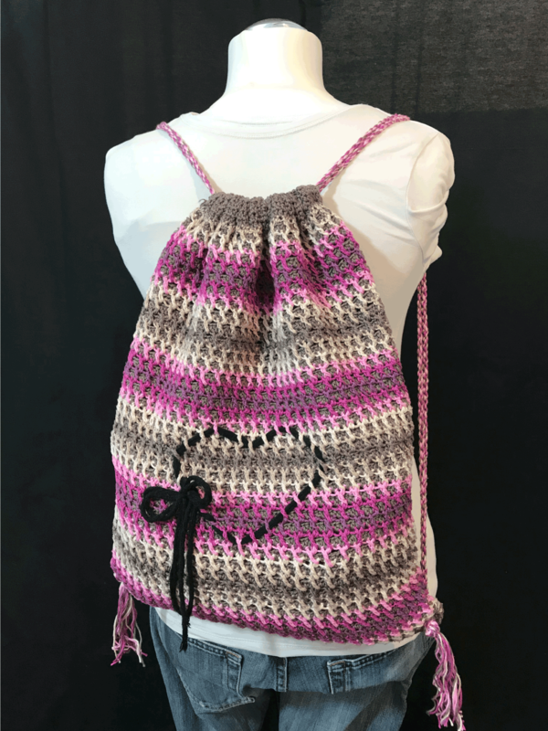 Der Beutelrucksack wird mit halben Stäbchen und Stäbchen gehäkelt. Außerdem solltest Du noch Luftmaschen, Kettmaschen und tiefer gestochene Stäbchen (wird aber auch in der Anleitung erklärt) können.