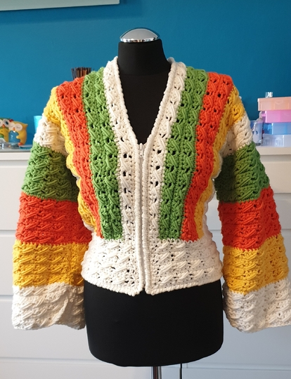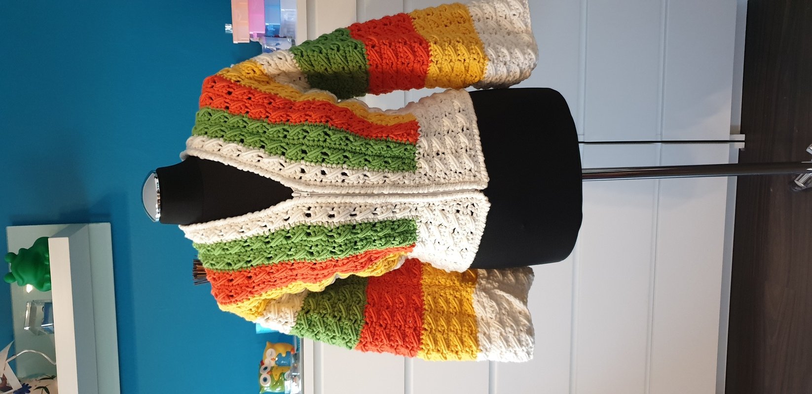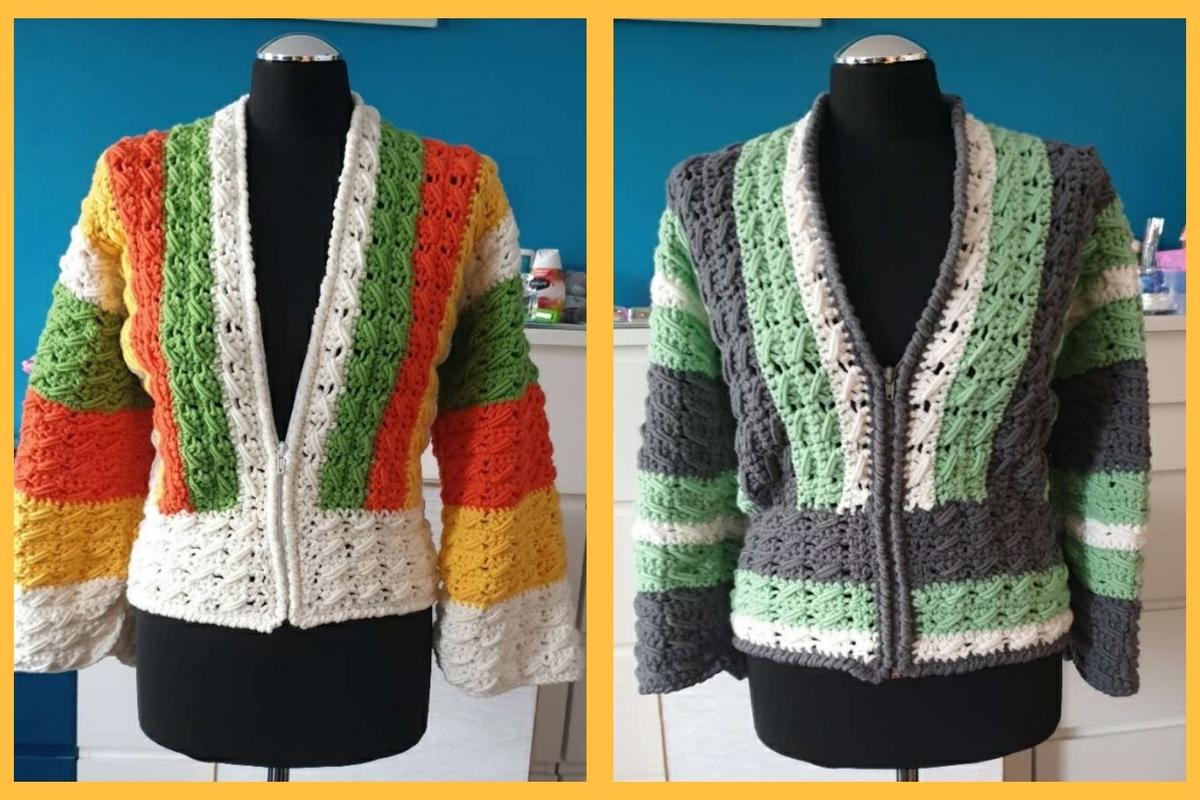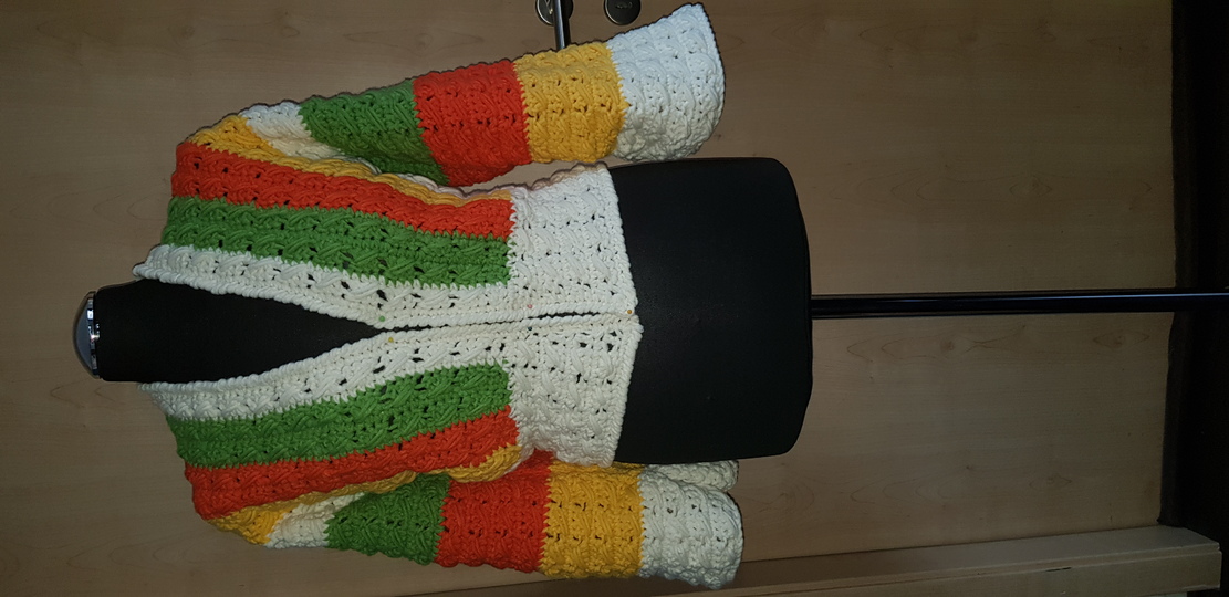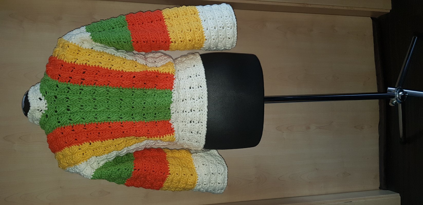 Da die Größe abhängig vom Wollmaterial dem Häkelstil (ob man fest oder locker häkelt) und auch den eigenen Körpermaßen ist, wird hier für Größe 36/38 beschrieben und gearbeitet.