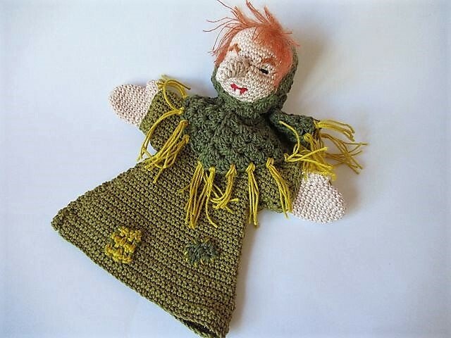 Die Handpuppe ist eher für kleinere Hände gedacht, damit die Kinder sie gut bespielen können. Wenn du sie breiter haben möchtest, häkle einfach bei Vorder- und Rückteil ein paar Maschen mehr in der Breite. Die Zu- bzw. Abnahmen und die Anzahl der Reihen verändern sich dabei nicht.