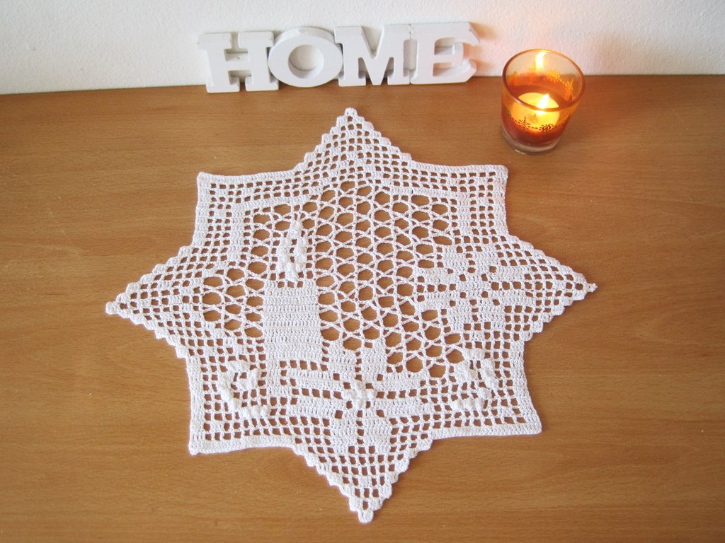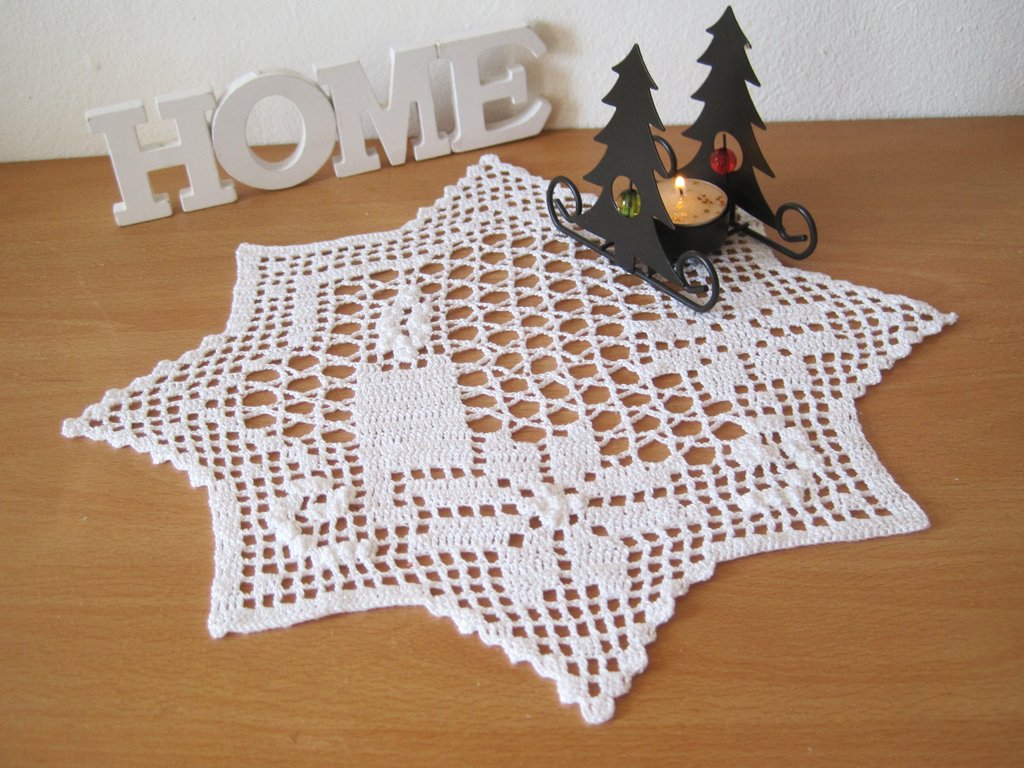 Zauberhaftes Filet-Deckchen mit weihnachtlichen Motiven ganz einfach selber häkeln