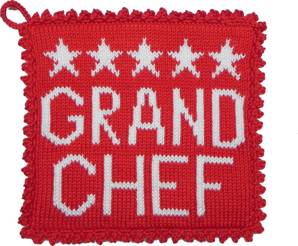 Dies ist eine Anleitung zur Herstellung eines gestrickten Topflappens in quadratischer Form.