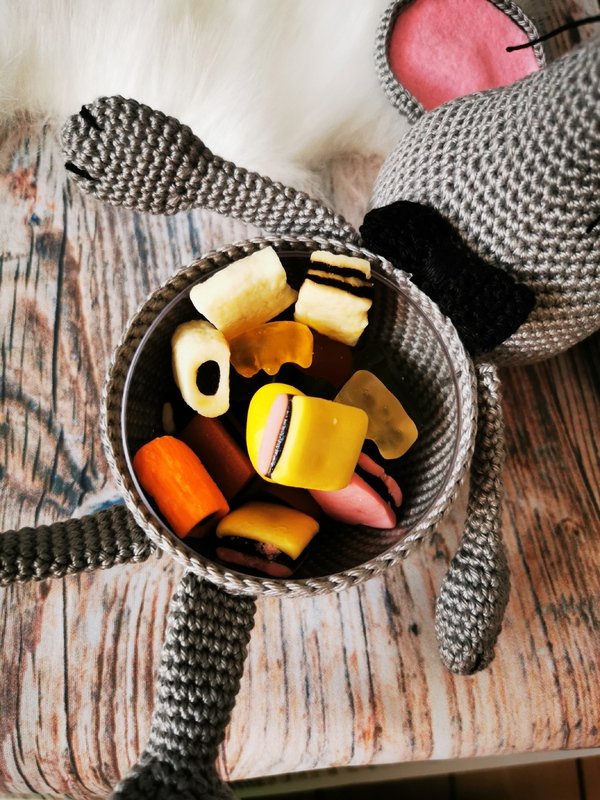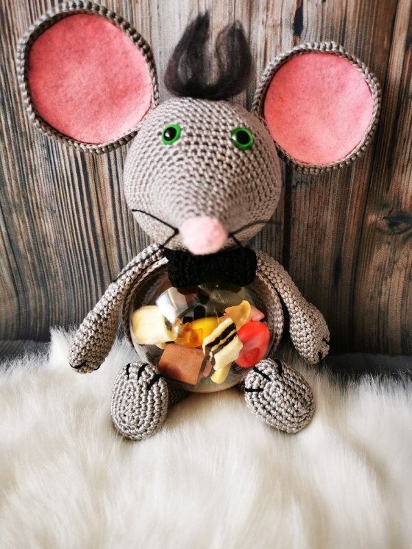 Nicht nur Süßigkeiten können in dem Bauch der Maus versteckt werden, sondern auch viele andere Dinge, eurer Fantasie sind keine Grenzen gesteckt.