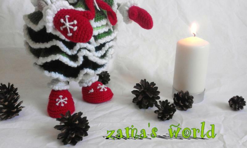 Meine Tänni misst bis zum Mützenpommel circa 44 cm und wurde mit einer Häkelnadel der Stärke 2,00 gefertigt. Ihre Arme und Beine sind biegbar und sorgfältig ausbalanciert kann Tänni selbstständig stehen (ohne Pflanzenstab).