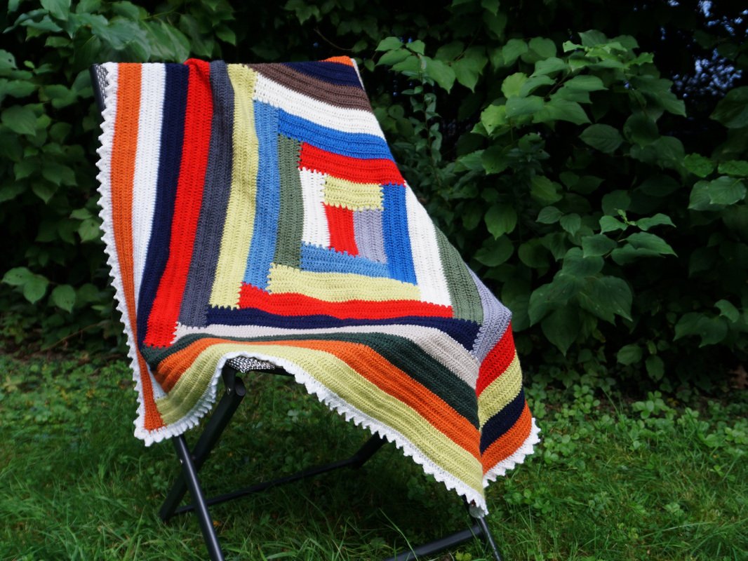 Wenn die Abende kühler werden, ist man froh, wenn man eine kuschelige Decke zur Hand hat. Umso schöner, wenn sie so farbenfroh daherkommt wie diese hier. Mit dieser Anleitung kannst du eine quadratische Decke häkeln, die beliebig gross werden kann. Nähen musst du nicht, alles wird zusammengehäkelt.