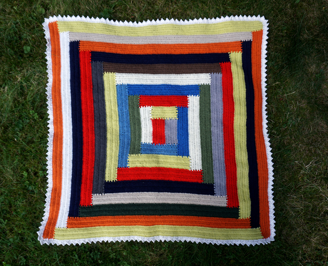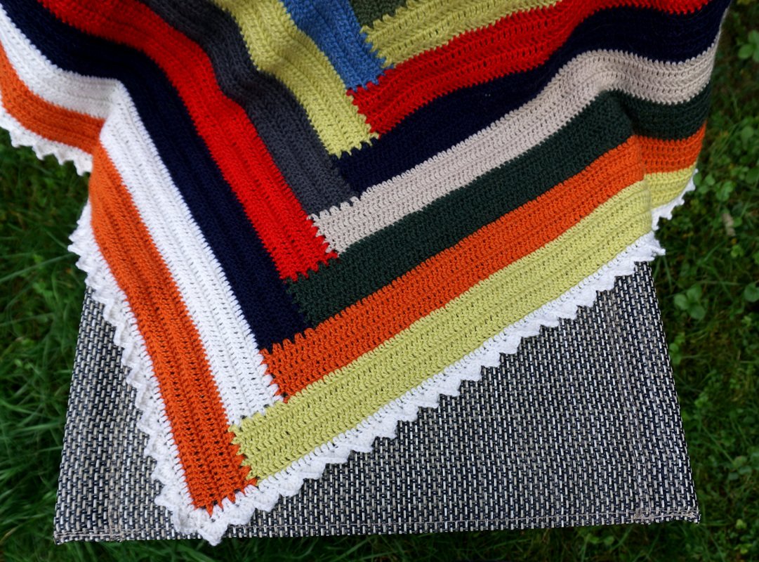 Ich habe die Decke mit Sockenwolle und einer 3,5 mm Häkelnadel gehäkelt.