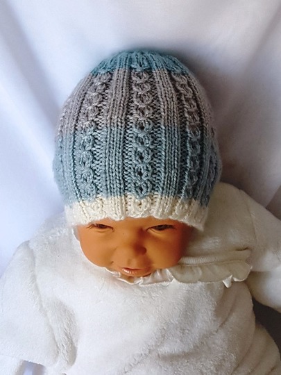 Die Mütze passt sich durch das Muster dem Köpfchen an und wächst eine zeitlang mit.