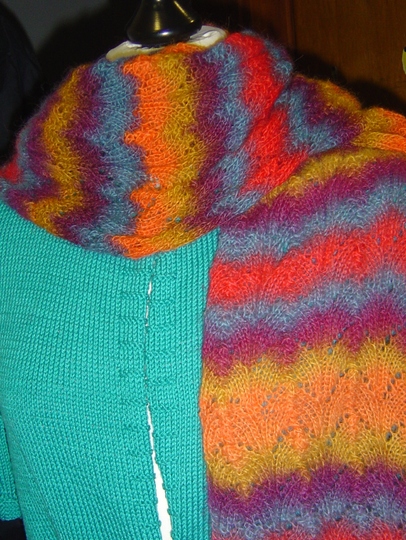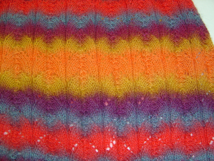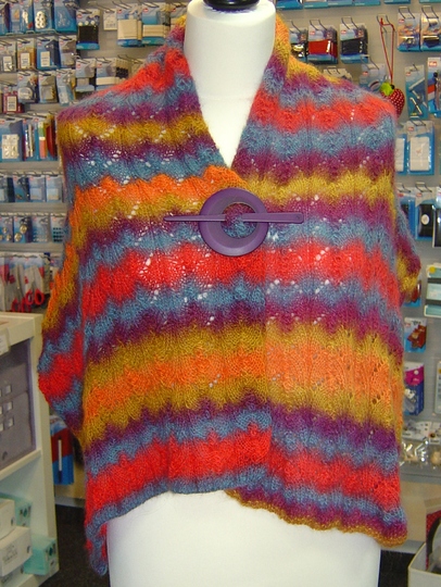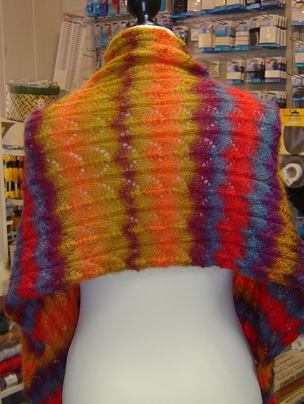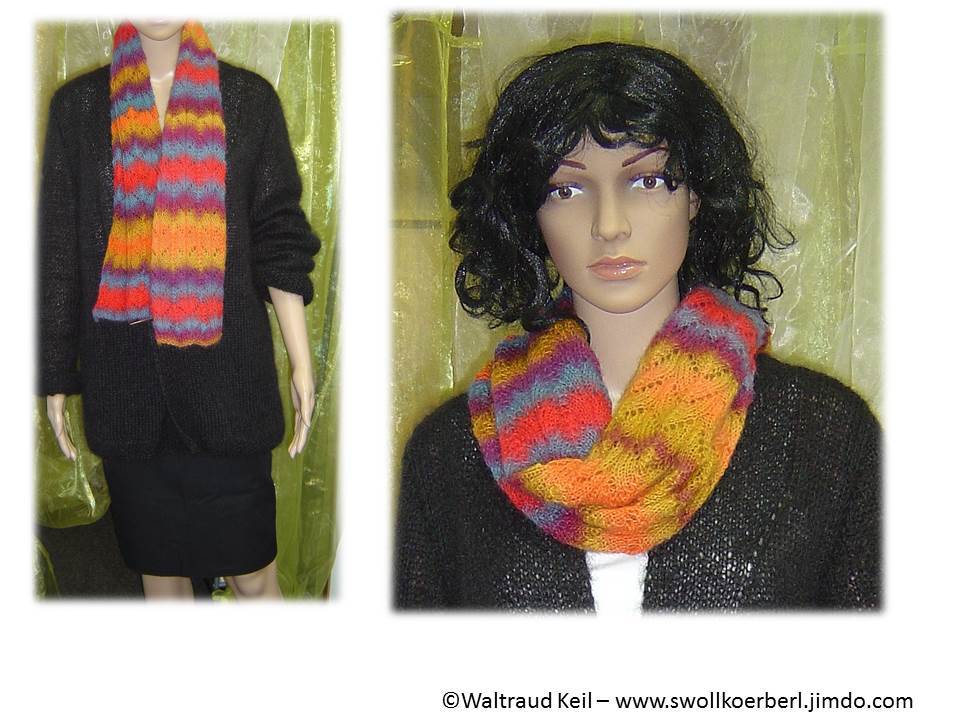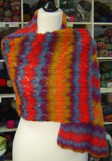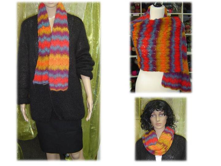 Ein federleichtes Lace-Tuch (Garn: 150 g Austermann Caleido Lace für ca. 42 cm x 112 cm) in einfachem Ajour-Muster, das als Schultertuch, Schal oder auch als Mützenschal getragen werden kann. Die Länge ist variabel.
