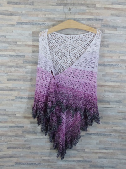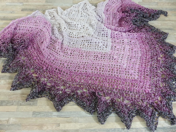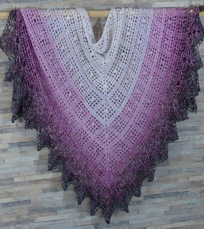 Das Tuch ist leicht zu häkeln. Es kann in der Größe selbst bestimmt werden. Im Innenbereich befindet sich ein Karomuster. Diese Reihen wiederholen sich. Das abgebildeten Tuch hat eine Größe von ca. 165 cm Breite und 83 cm Höhe.