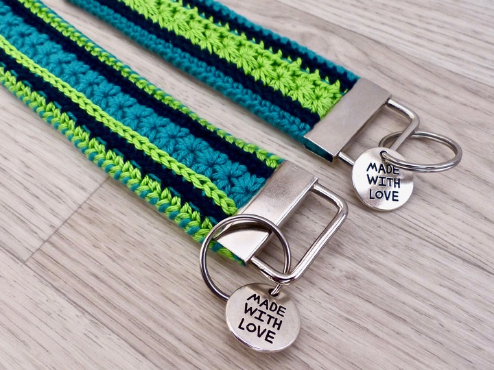 Mit dieser Anleitung kannst Du aus Wollresten wunderschöne, leicht asymmetrische und damit moderne Schlüsselbänder häkeln. Dabei sind Deiner Kreativität bei der Farbwahl keine Grenzen gesetzt.