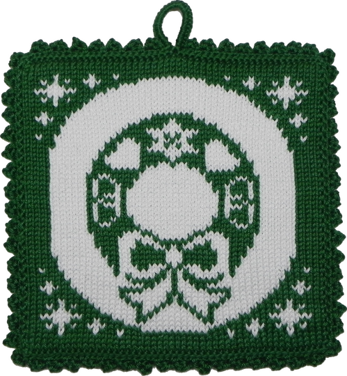 2 Knäuel Farbe dunkelgrün und 1 Knäuel weiß / pro 2 Topflappen