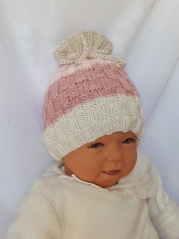 Die Mütze passt sich durch das Muster dem Köpfchen an und wächst eine zeitlang mit.