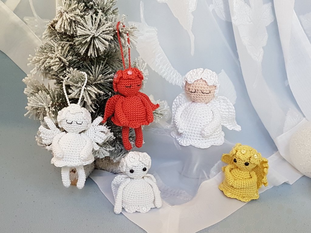 Das Engelchen ist in unterschiedlichen Größen häkelbar. Dabei kommt es auf die verwendete Wollstärke und Nadelgröße an.