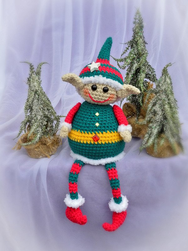 Der große Elf wird mit der angegebenen Wolle incl. Mütze ca 42 cm hoch (ohne Schlenkerbeine)