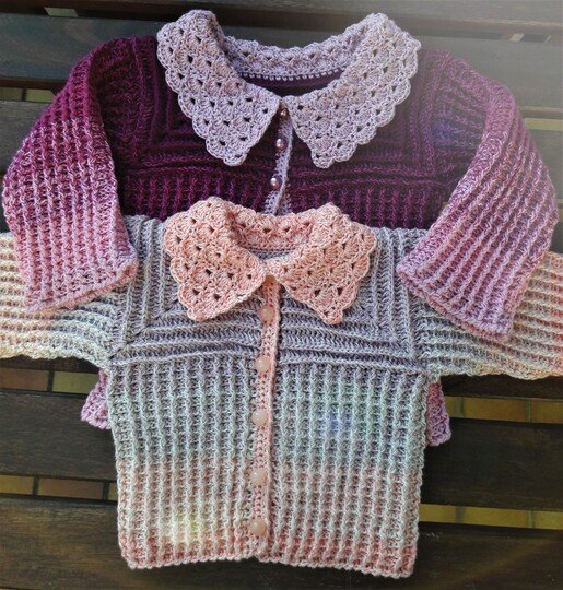 Das Jäckchen kann in den Größen 50 - 104 gehäkelt werden.