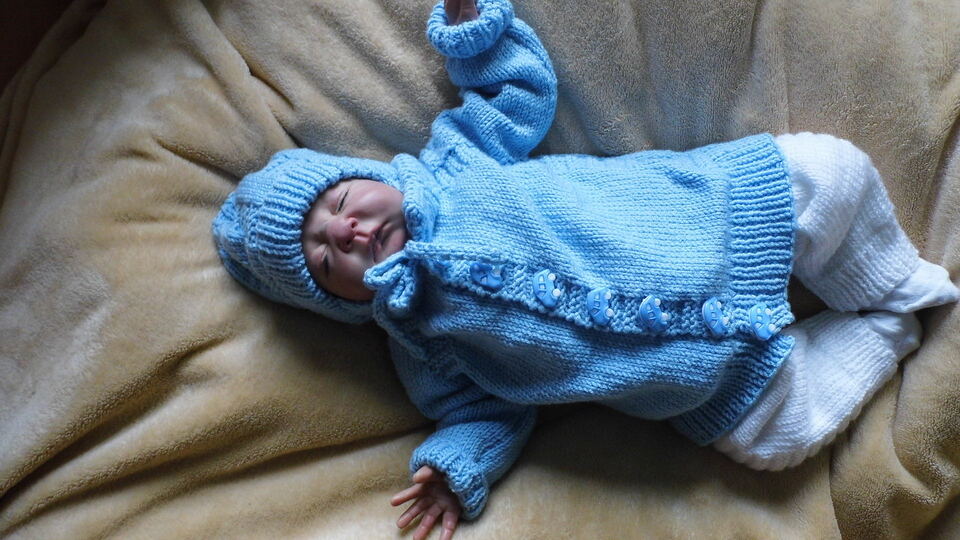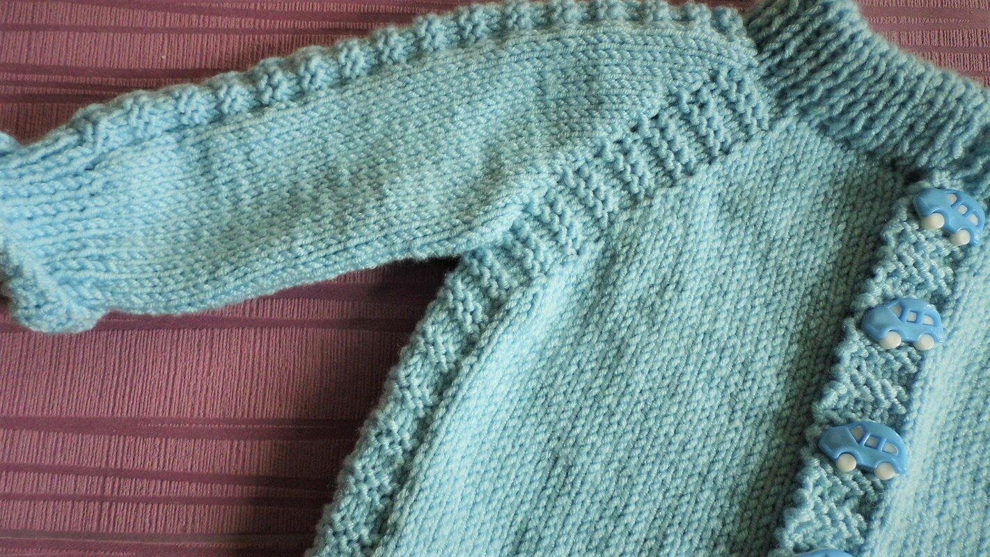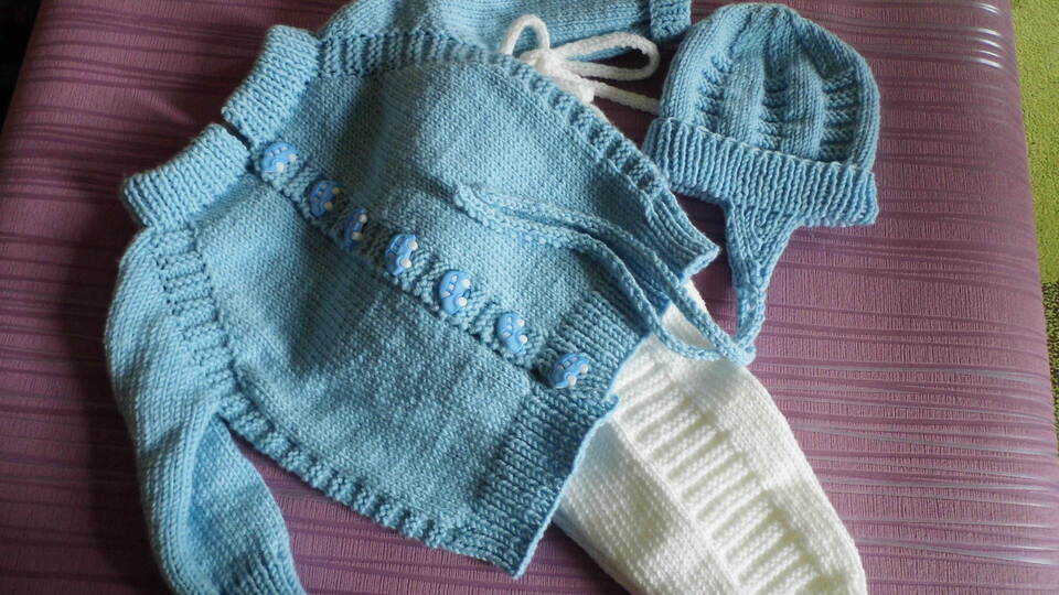 eine einfache Strickanleitung für eine sportlich gehaltene Babyjacke und eine Mütze mit Ohrenklappen.