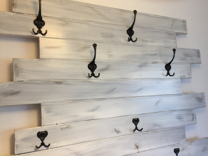 Meine neue Wandgarderobe im Shabby Look hatte ich allerdings mit neuen Materialen (Rohholzbretter) hergestellt und dann im Shabby Design gestrichen. Leider hatte ich nicht rechtzeitig daran gedacht, Schritt-für-Schritt-Fotos zu knipsen. Aber am Schluss dieser Anleitung findet Ihr ein Foto der fertigen Wandgarderobe.