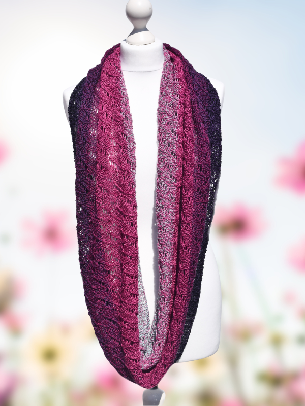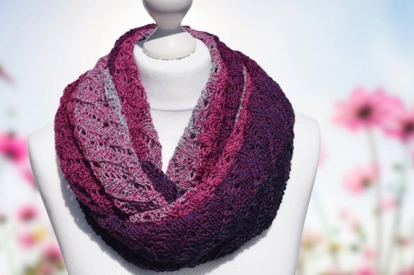 Sweet Berry - süsse Beeren. Die Farben und die Anmut dieser köstlichen Früchte haben mich zu dieser Strickanleitung inspiriert. Dieser Loop ist ein vielseitiges Accessoire, das zu verschiedenen Outfits passt.