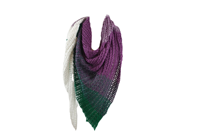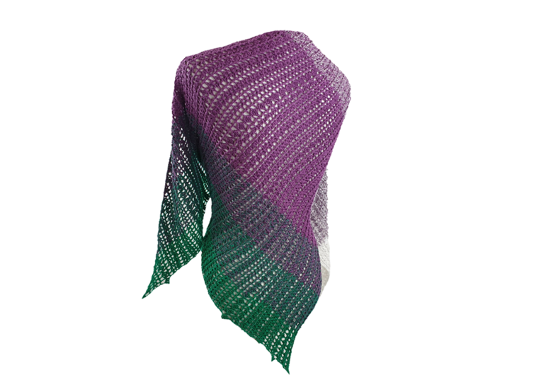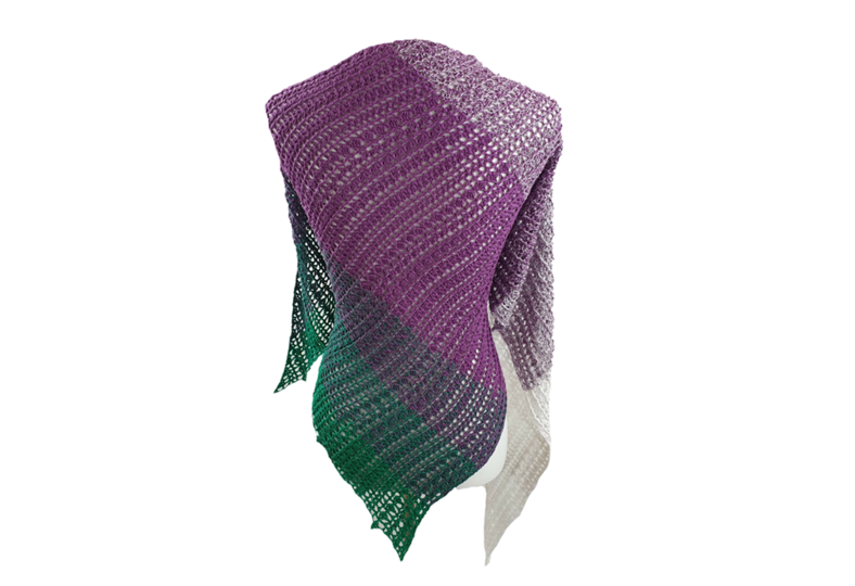 Für das Tuch wurde Bobbel "Mosaik" von MT.Bobbelwelt verwendet. 1000LL 3Fädig und mit